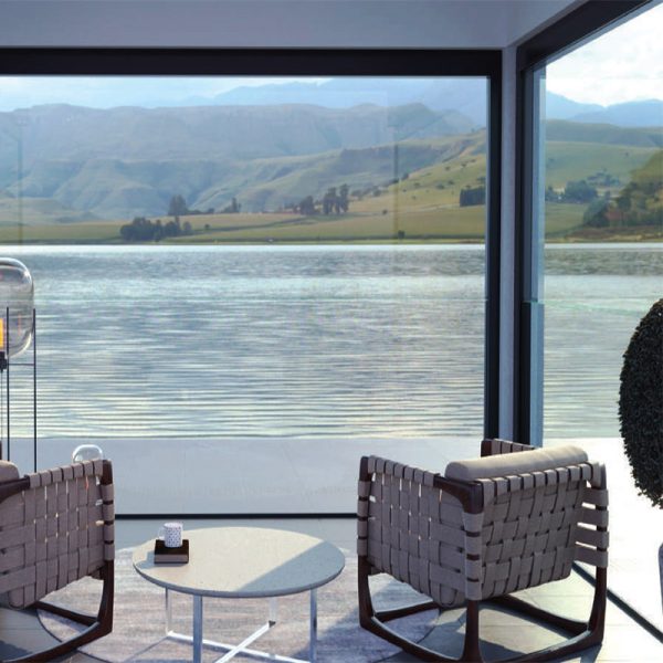 A VertiFlex All-Glass module consists of 2 panels, one movable and one fixed, and provides an uninterrupted and panoramic view, as there is no spacer between the overlapping glass panels in the system.